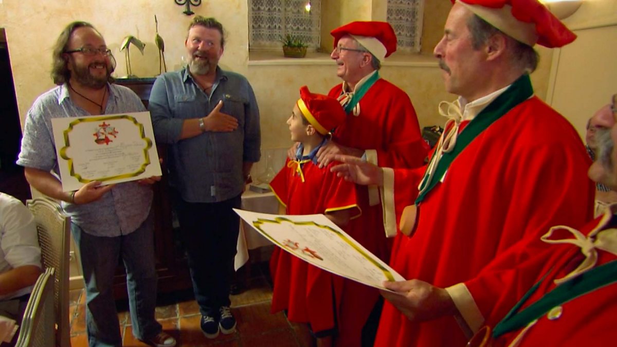 En route, they also bake an apricot tarte tatin and a delectable flan de St Jean de Minervois (like a creme caramel but made with lavender honey and dessert wine). But it's not all baking on this trip. They also meet up with Dave's old flatmate French Pat, who he's not seen for 30 years, and are inducted into the Ancient Order of the Cassoulet when they reach journey's end in Carcassonne.