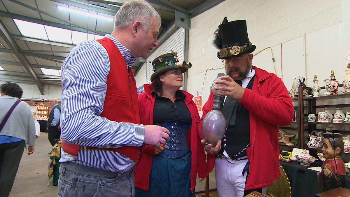 Antiques challenge. In Stafford, a team of steampunks take on two friends with a penchant for old-fashioned attire, with help from Colin Young and Kate Bliss.