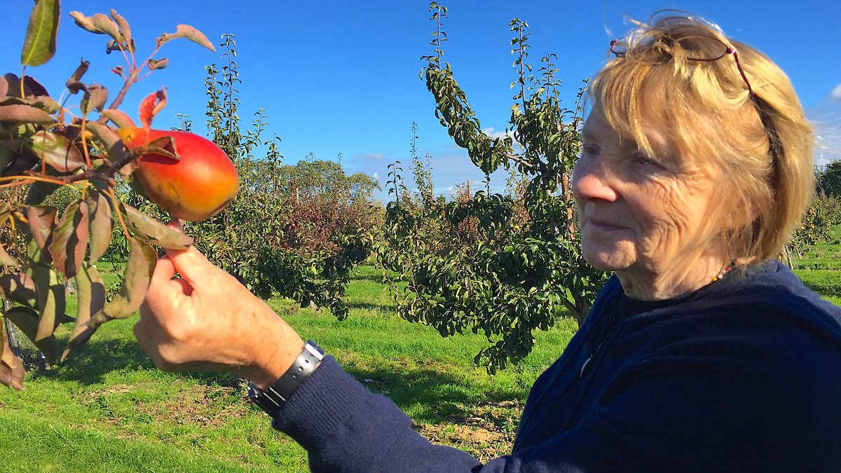 Joan shows Sheila the pear orchard at the National Fruit Collection at Brogdale, one of the biggest fruit collections in the world, revealing the secrets of this unique collection - some 500 varieties of pear growing in one place.