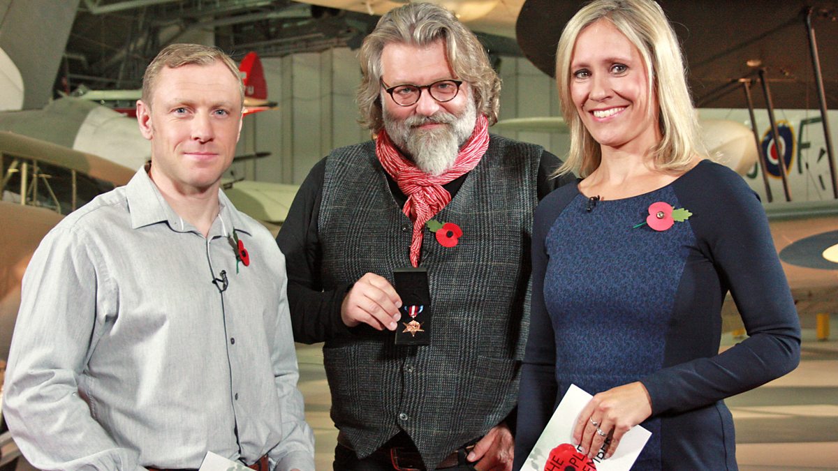Wartime history series. Sophie Raworth and Andy Torbet surprise special guest Si King as he is presented with his late father's medal for wartime service.