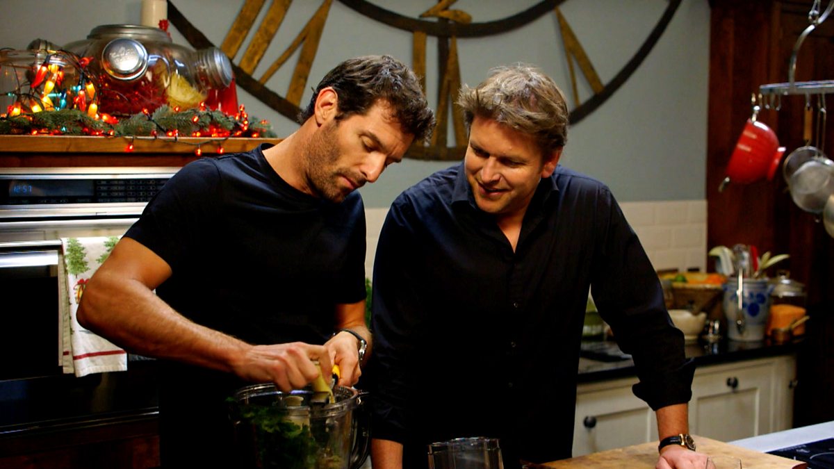 James Martin takes a trip down memory lane and recreates festive feasts inspired by his childhood. He is joined by racing driver Mark Webber.