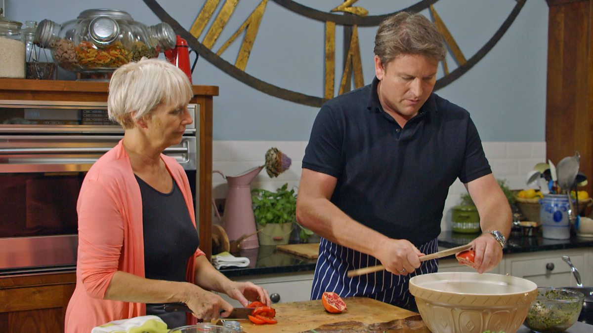 James Martin shares his favourite lunchtime recipes. Say goodbye to soggy sandwiches and unsatisfying salads - with recipes like pork and pomegranate tabbouleh and a fruity tray bake, James tries to make us fall in love with lunch again.