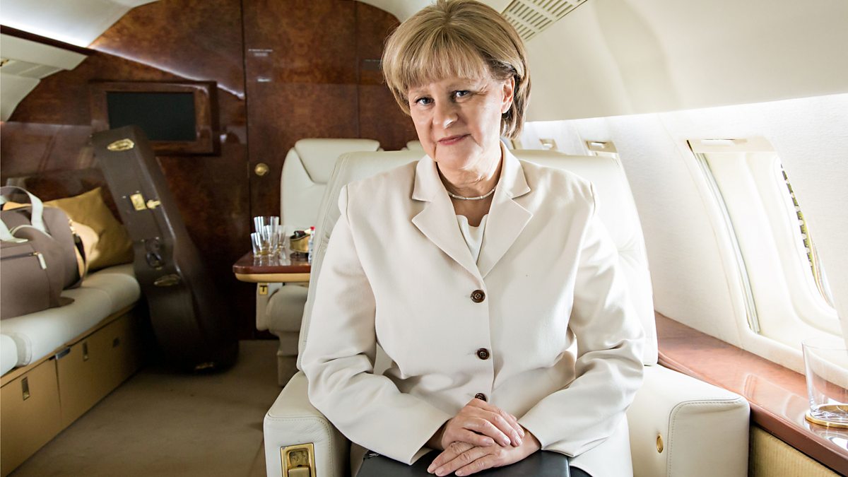 Comedy sketch show. Overthrown dictator's wife Soraya Al Amir tries to start a new, more innocent life, and Angela Merkel is back in Britain for another political summit.