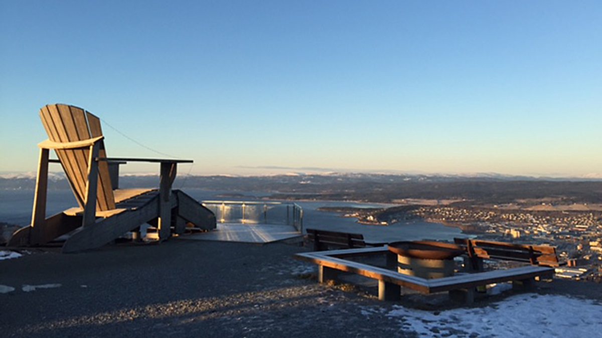 Claire climbs a hill to see the world's biggest garden seat in Oftenåsen, with the spritely Asbjorn Mathieson as her guide.