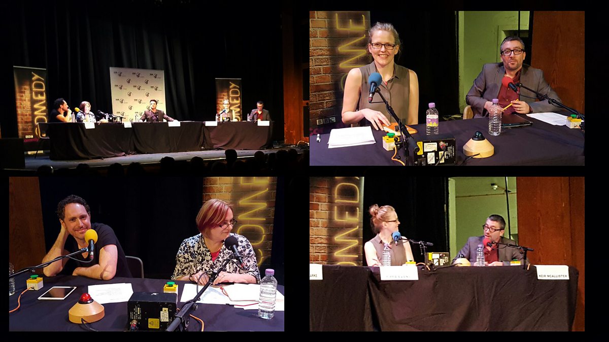 Host Des Clarke is joined by comedians Pippa Evans, Keir McAllister and Susan Morrison and journalist Hugo Rifkind for a satirical swipe at the week's big news.