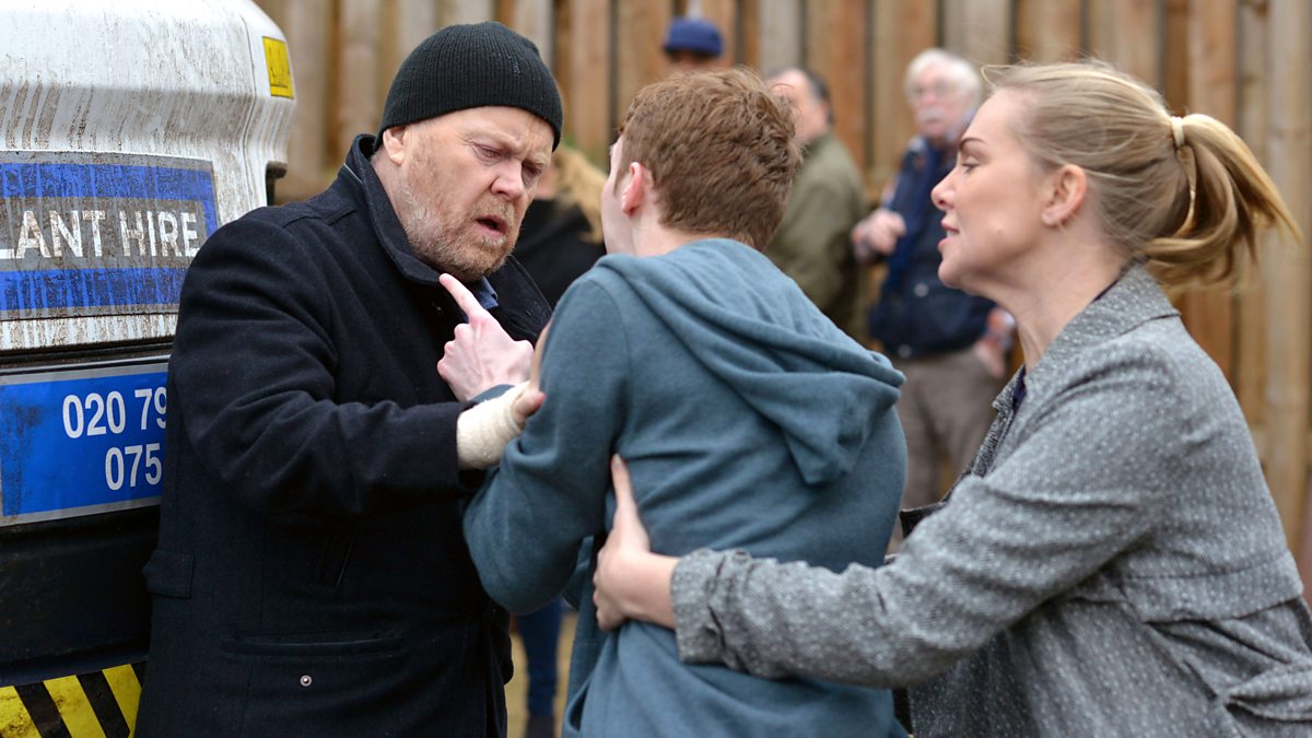 Ben begins to smother Phil with the cushion but Sharon hears them and pulls Ben off of Phil. She tries to make Ben see sense and comforts him. Phil wants them out of the house and when they ignore him he throws his empty whiskey bottle at the wall. Sharon makes it clear that she isn’t going anywhere. She explains that he didn’t black out earlier, Ben tried to kill him. Phil finally leaves. Three builders park their JCB in front of the Car Lot. Ronnie follows Ritchie out of No. 27 and Ritchie says that her hands are tied. Phil spots them across the Square and shouts through Ritchie’s car window.