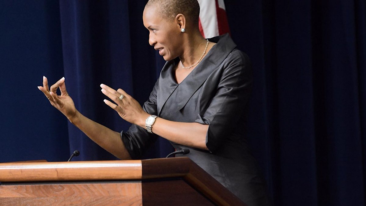 Topical magazine series for deaf and hard-of-hearing people. Erika Jones meets deaf women holding positions of power with US president Barack Obama.