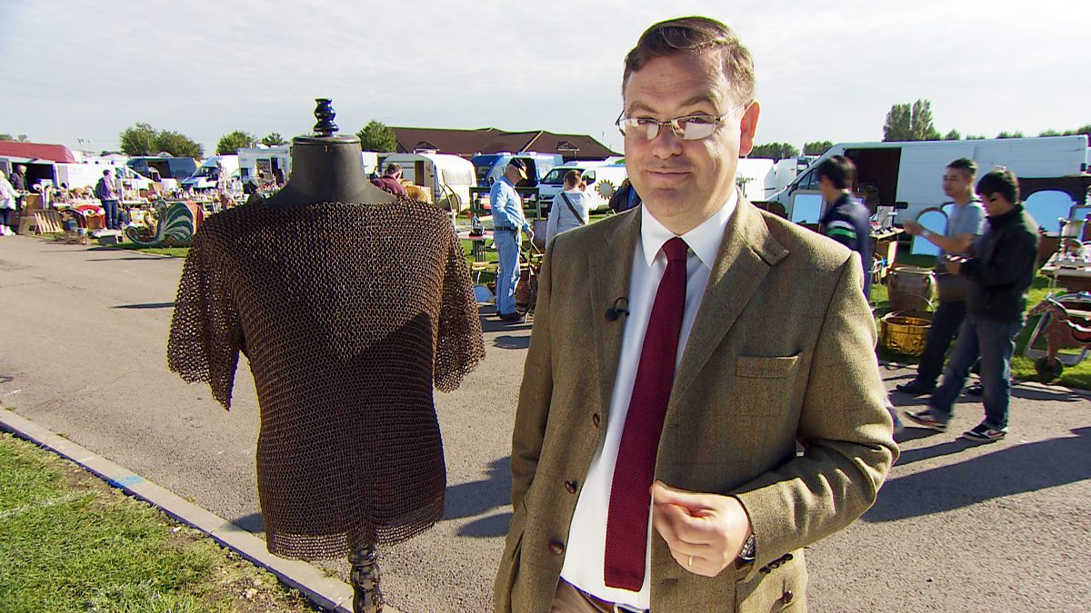 Paul Laidlaw takes the reins for this edition of Bargain Hunt, which sees two plucky teams taking on the Newark antiques fair in Nottinghamshire. They are helped along in their odyssey by Ben Cooper and Natasha Raskin in the hope of making large profits at Charles Hanson's saleroom in Derbyshire. Paul also looks at something that was at the cutting edge of technology over half a millennium ago.