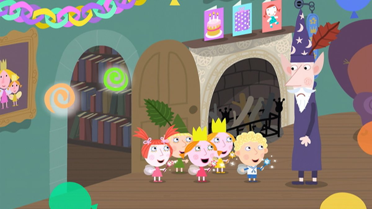 It is the twin's birthday party, and chaos ensues when their little friends arrive. The Wise Old Elf tries to entertain them, but they prove too much of a handful, turning the Wise Old Elf into a mouse and ending up in the secret room. The room contains a terrible magical force never to be let out, but luckily Redbeard the Elf Pirate bravely saves them all. Nanny finishes off the day by creating one of her famous jelly floods, and all is well in the Little Kingdom!