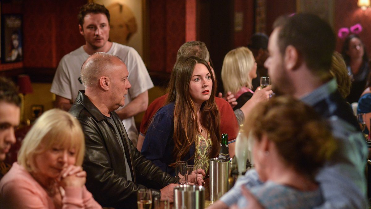 Kyle keeps watch as Martin, Stacey Kush and Belinda return the stolen toilets to Number 5, under the cover of night. As the group rush back across the Square to the party, Jack stops the group and asks Belinda if she wants to talk about the deal! She bluffs her way out of it and rushes off giving Jack a longing look. Jack and Andy return home to find the stash of stolen toilets returned. The group return to the Vic, Mick is suspicious of them. The Vic is buzzing, with everyone drinking the champagne Peggy has bought. Mick proposes a toast to Peggy with her champagne; Linda does a speech for Martin and Stacey. In the midst of the party, Ian gets a call from Sharon telling him the news about Peggy. Kathy then breaks the news to a shocked Ben. The mood in the Vic quickly turns sombre. Stacey and Martin reminisce about how lovely and kind Peggy was - Stacey tells Martin that she feels she can’t go through with the wedding following Peggy’s death.