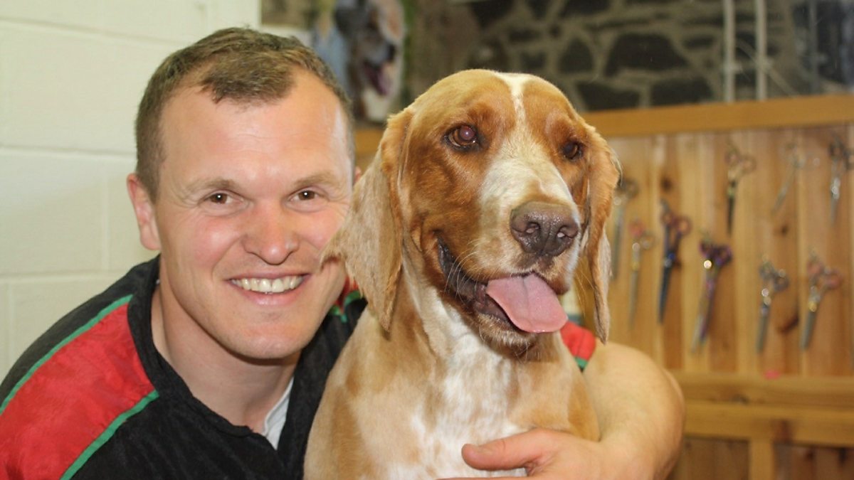 I ennill ei grwstyn, mae Dylan Wyn Davies yn pampro cŵn o'u pen i'w pawennau o'r corgi lleia i'r dane mwya grêt. Meet dog groomer Dylan Wyn Davies and his canine companions.