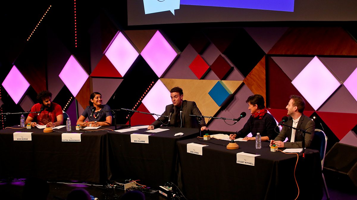 Host Des Clarke is joined by comedians Zoe Lyons, Nish Kumar and Stuart Mitchell plus journalist Chitra Ramaswamy for a satirical swipe at the week's big news.