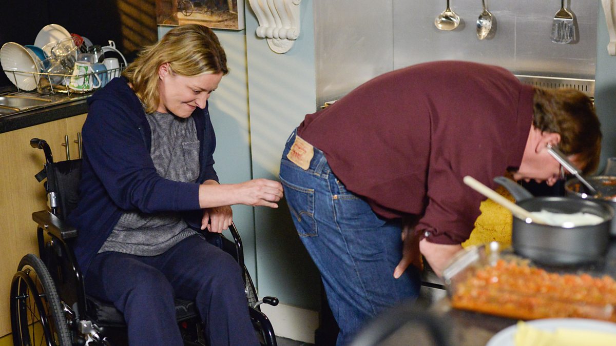 Ian’s embarrassed whenever someone mentions Jane, sure everyone’s talking about her accident in the pub. Jane’s direct with Ian - last night all she wanted was a cuddle and to feel normal. She thinks all Ian sees when he looks at her is the chair. Ian denies it but quickly heads out to get fish and chips, to avoid having to talk further. At the chip shop, Ian admits to Billy that sometimes he feels like he’s looking after an old person. He asks Billy how he’d feel if it was Honey in Jane’s situation and is given food for thought when Billy insists he’d still love Honey – they’re best mates and that’s what sees you through in the long run. Ian dashes off, abandoning his fish and chips.