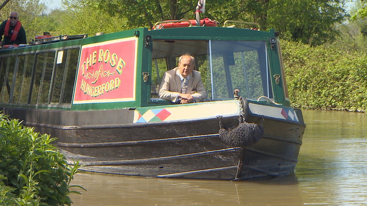 Charlie Ross is travelling along the Kennet and Avon Canal to Hungerford, where the many antique shops are the setting for today's competition. Experts David Harper and John Cameron are on hand to help out the teams before the auction in Newbury.