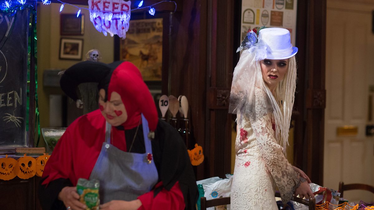 Lee’s egged on his way home from work. He finds the Carters decorating for The Vic’s Halloween party and Linda explains he and Whitney are going to be left in charge for the evening – she and Mick are going to run Elaine’s place as she’s had a funny turn. After hearing Lee and Whitney talking and realising Lee’s not got over Whitney’s miscarriage, Abi once again feels guilty about giving him chlamydia.