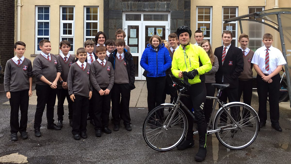 Rhaglen o Gaerfyrddin cyn i Aled seiclo o Bumsaint i Lanilar ar ail ddiwrnod ei her er budd Plant Mewn Angen. Day two of the cycling challenge takes Aled from Pumsaint to Llanilar.