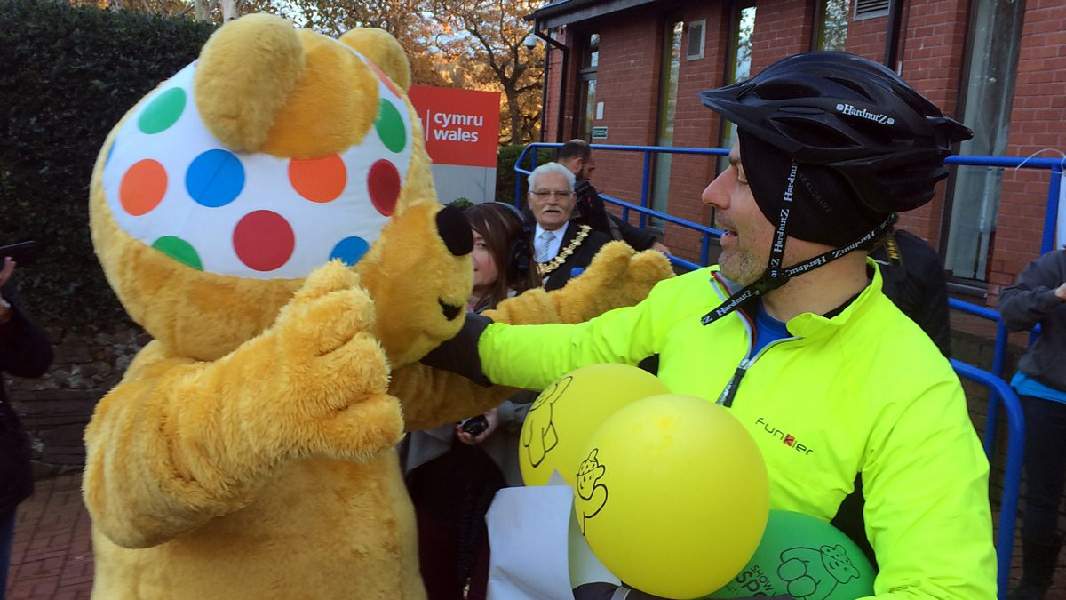 Rhaglen o Benrhyndeudraeth cyn seiclo i Fangor ar ddiwedd yr her er budd Plant Mewn Angen. Aled presents from Penrhyndeudraeth ahead of the final leg of his cycling challenge.