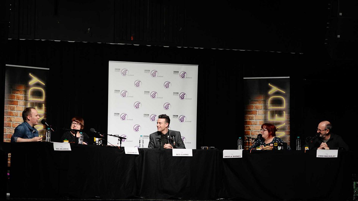 Des Clarke is joined by comedians Fred MacAulay, Angela Barnes and Neil Delamere plus author Louise Welsh for a satirical swipe at the week's big news.