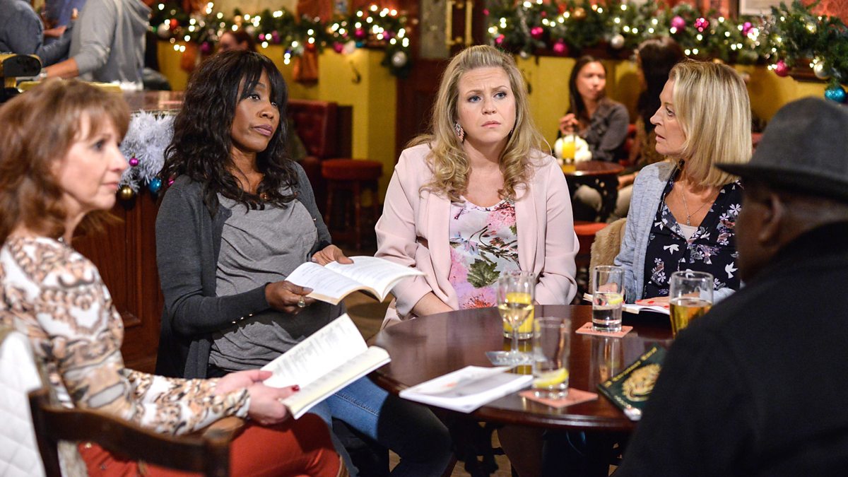Kathy’s worried - Derek’s agreed to direct ‘A Christmas Carol’, but they still need a new cast and script. She beseeches Denise’s help. Denise claims she’s too busy, although she’s pleased when her evening class tutor, Jorgen, suggests she write the script herself. In the Vic, Denise joins Kathy, Derek and Carmel as they pore over scripts from the library; the others think the story is too depressing, and Patrick suggests Denise could write a more uplifting script. Denise protests, but eventually gives into the others’ pleading.