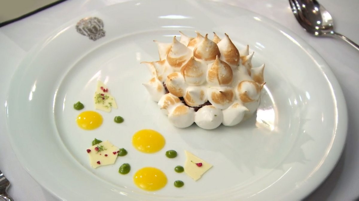 The chefs have two and a half hours to create and cook a three-course fine-dining menu for the president and his guests. They have to design a spectacular menu with stunning vegetarian options for the president himself. Having worked as individuals so far, the chefs must now collectively come up with a meal for the guest list of luminaries from the world of medicine. The menu must meet the expectations of the president, his guests and the judges.