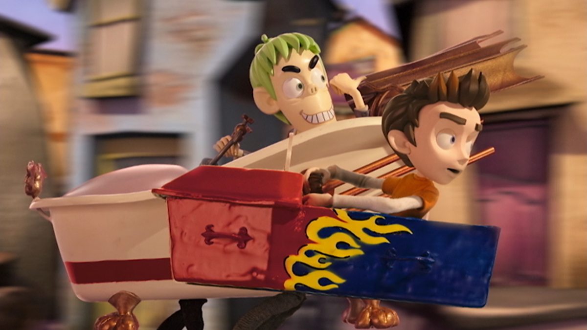 Tha rèis mhòr Sgread ag adhbharachadh sgaradh. The Scream Street derby pits Luke and Resus against one another, while Otto seeks victory.