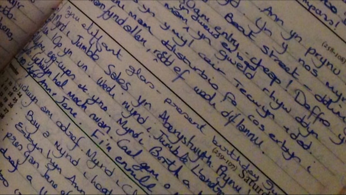 Pori yng nghanol dyddiaduron mae John Hardy ar yr ymweliad hwn â'r archif, sy'n cynnwys Eigra Lewis Roberts yn trafod cyfieithu Dyddiadur Anne Frank.