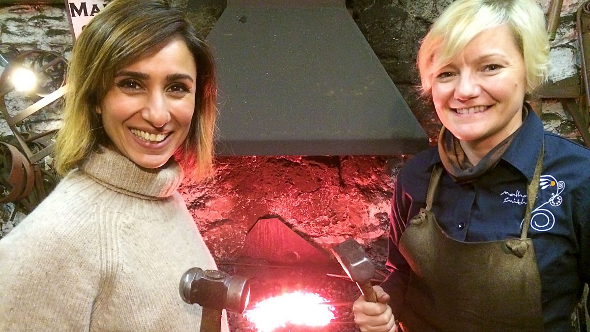 Anita escapes the rain and steps inside The Smithy, where the glowing embers of a fire allow blacksmith Annabelle Bradley to create works of art right in the heart of the village of Malham. The Smithy has produced the echoing sound from a blacksmith for centuries but for Annabelle it’s a craft she picked up herself, having previously been a tax accountant.