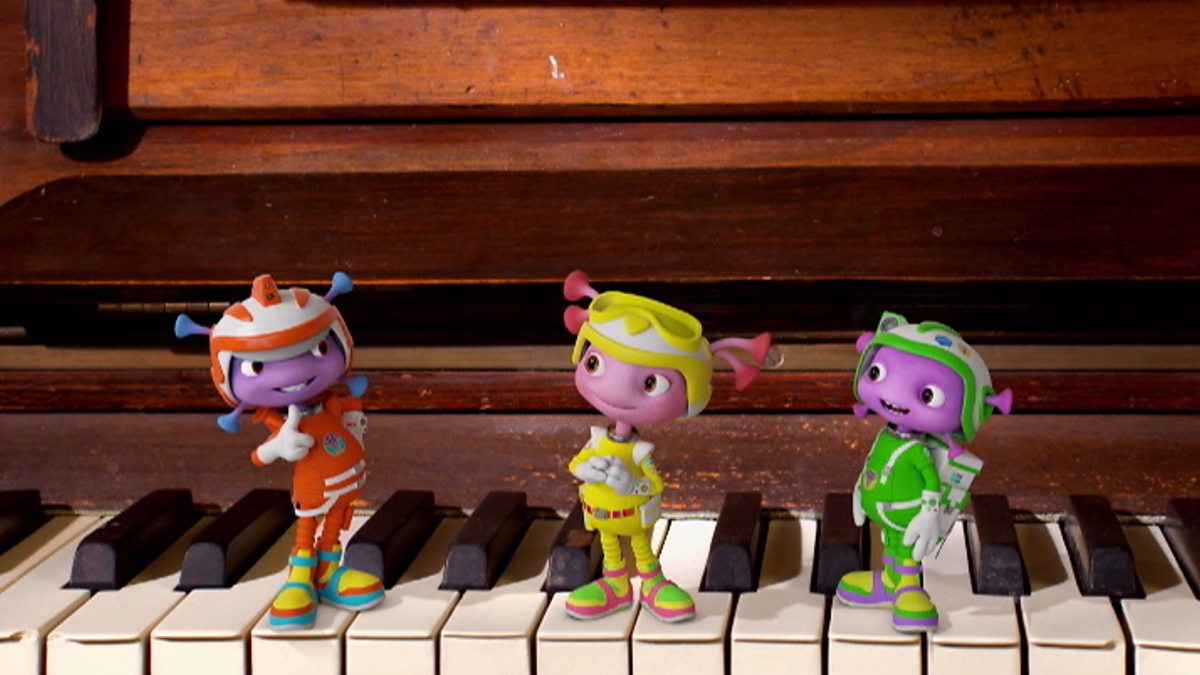The Floogals are struggling to understand how a piano can make such lovely music! Keen to learn how to play it themselves they encounter a problem - the piano is a large object and the Floogals are very small beings.