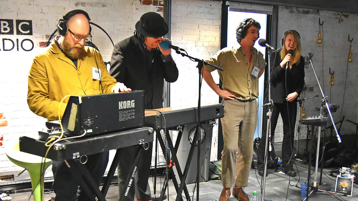 The collective made up of parts of the Eccentronic Research Council & Fat White Family join us live, ahead of the release of their debut LP 'Interplanetary Class Classics'. Due on Transgressive Records on 24th March the record includes contributions for Rebecca Taylor of Slow Club, Sean Lennon, Randy Jones (the cowboy from The Village People) and Yoko Ono. Charting the exploits of fictitious front man Johnny Rocket' we've come to expect the unexpected with regards to The Moonlandingz.