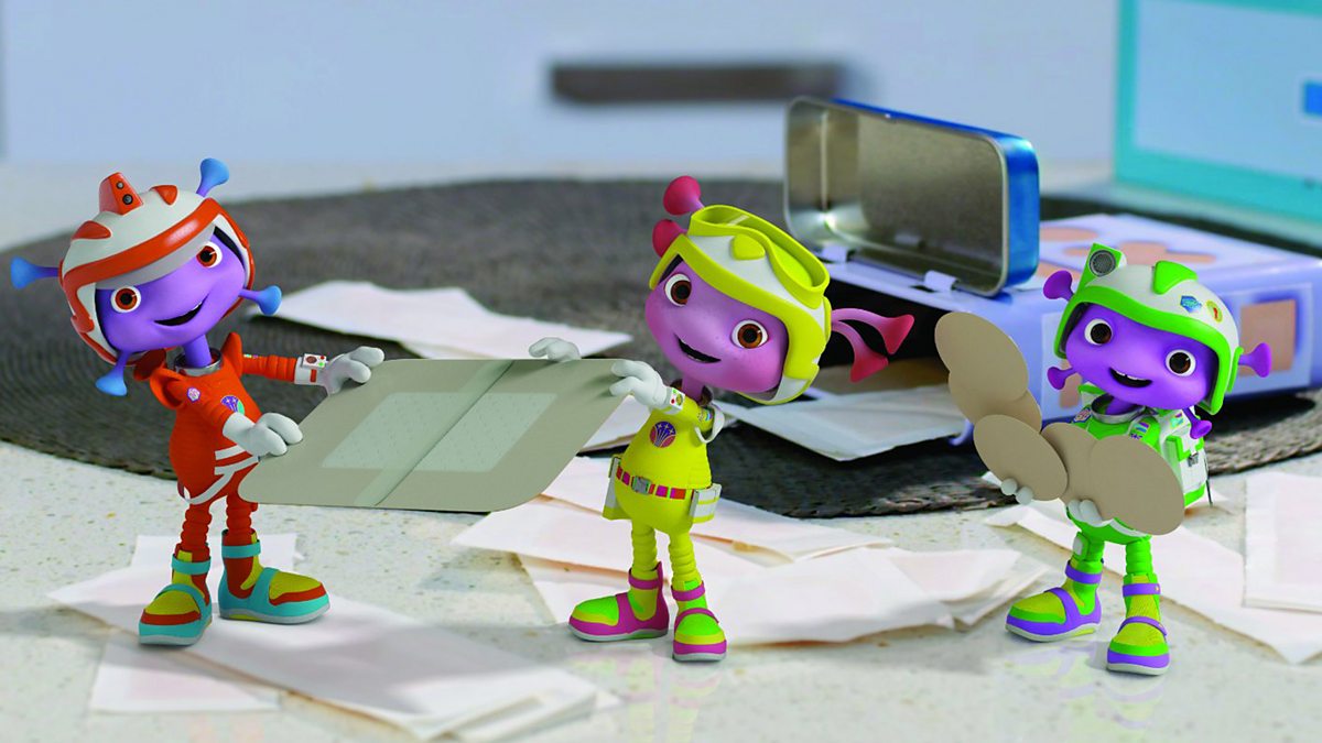 Tha na Floogals a' lorg plèastaran ach chan eil iad a tuigsinn carson a tha iad. The Floogals find plasters but they can't work out what they might be for.