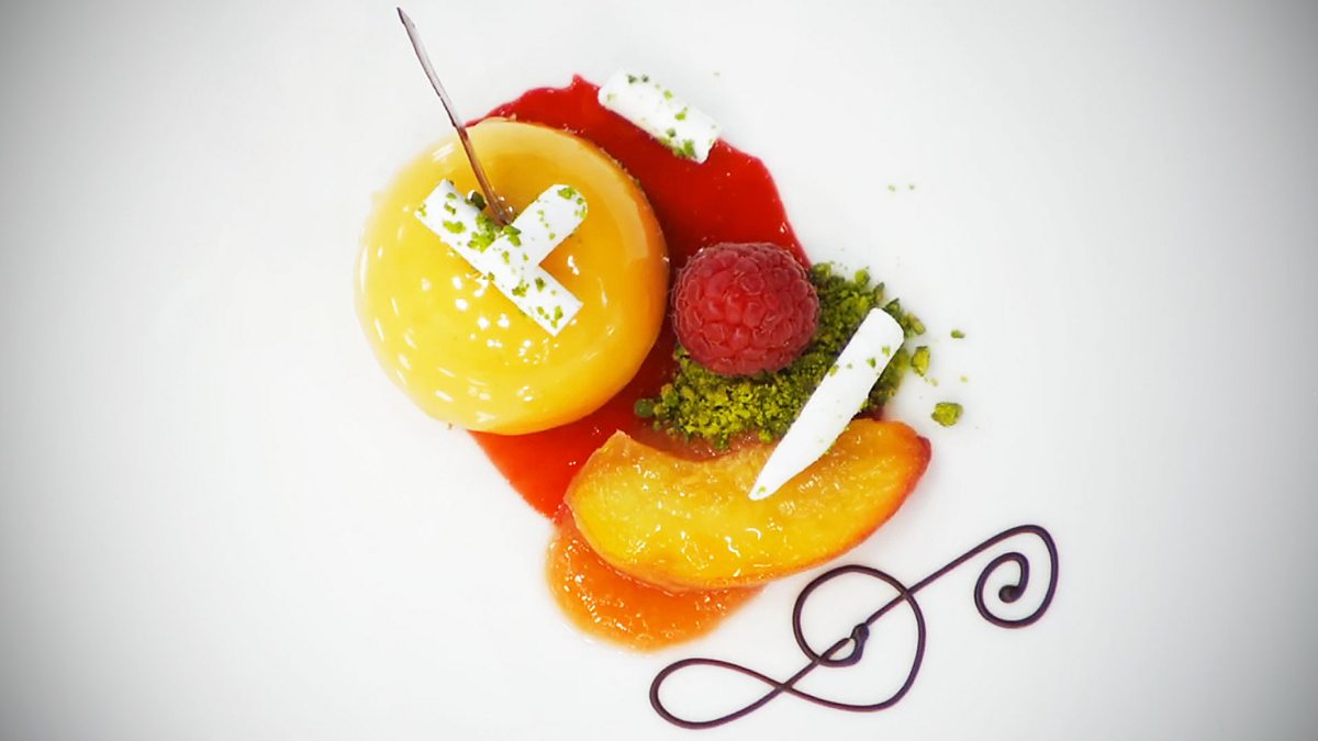 The second challenge demands that they each make an extraordinary showpiece dessert by reinventing the classic peach melba in just four hours. The team with the lowest total score at the end of the final challenge leaves the competition.