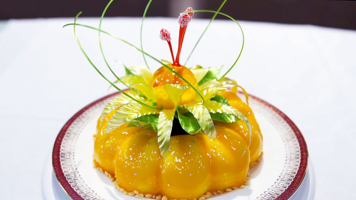 For their first challenge, in just three hours the teams must each create six exactly identical and multi-layered crown entremet - large circular sharing desserts comprising of many complimentary flavours and textures. At the same time, they have to prepare all the elements needed to perform a spectacular piece of gourmet theatre known as live table plating, creating a dessert drawing on the theme of tropical fruits. At the end of the challenge, the teams are given three minutes to transform their table into a gastronomic work of art, under the unwavering gaze of judges Cherish Finden and Benoit Blin.