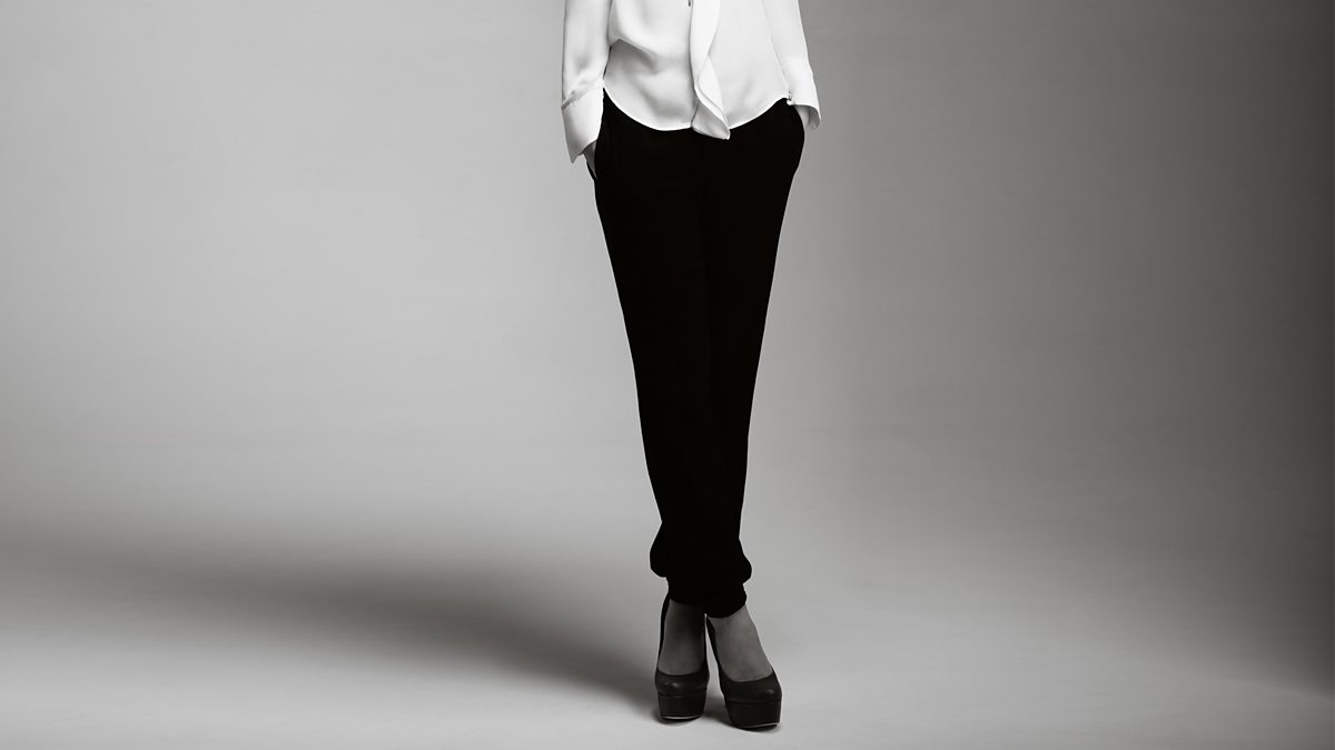 4 Extra Debut. Laura Barton explores the history of trousers in the workplace and how they evolved from function to fashion. From 2017.