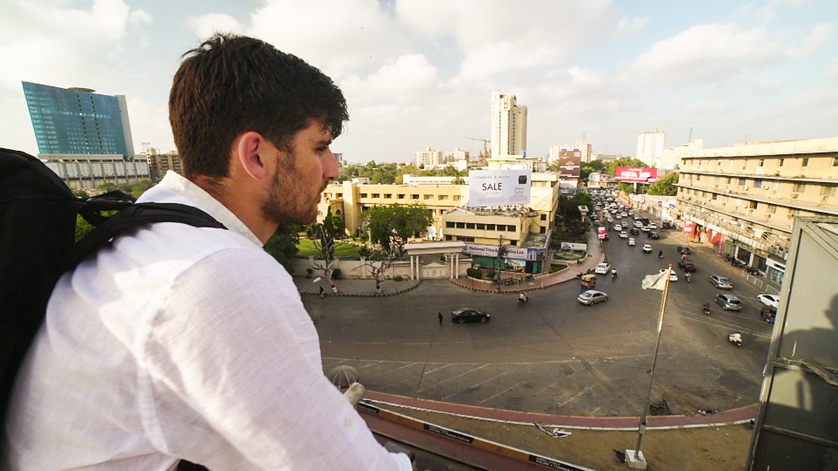 Benjamin Zand takes a rooftop bus trip around Karachi in Pakistan, stopping for spicy omelettes before playing football in one of the city's toughest neighbourhoods.