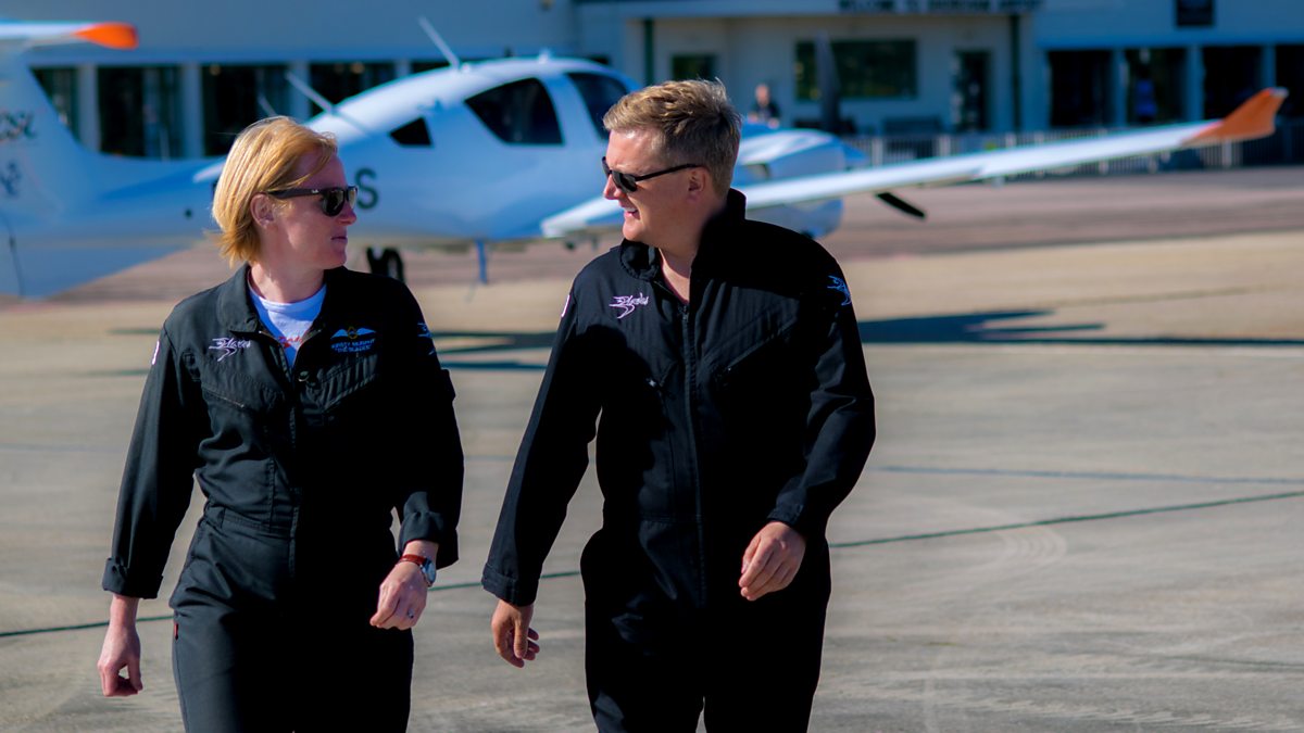 Aled Jones is at Shoreham Airport ahead of The Eastbourne Air Show to fly with The Blades' Kirsty Murphy, only female pilot to ever fly with the display team The Red Arrows. Aled then hears 95 year old George Wood's remarkable testimony story.