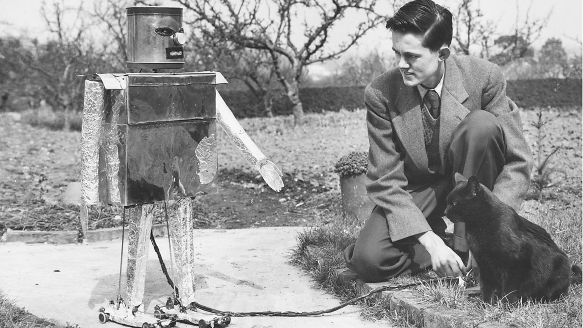 Image: 26th April 1955: A youth makes his homemade robot walk. (Credit: Keystone / Getty Images)