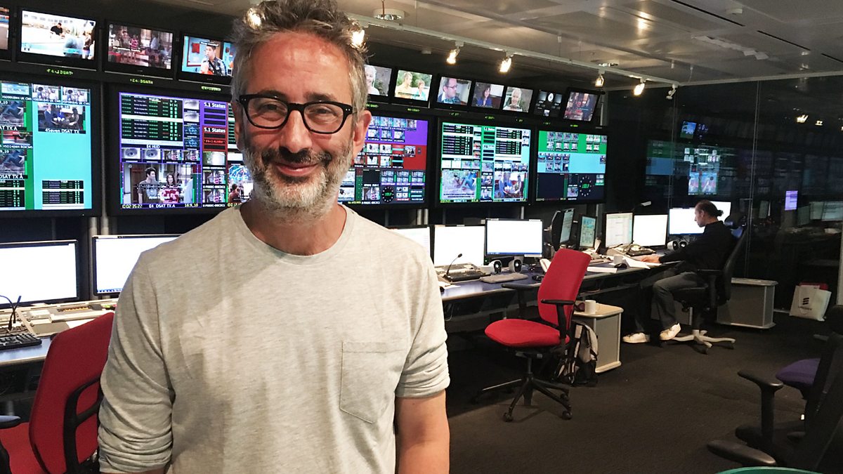 In the last episode of the current series, David helps broadcaster Danny Baker understand TV broadcasting. Both of them have spent decades in and around TV, but neither quite understands how it works. Danny wonders if there is a 'magic room' where all the programmes get lined up and broadcast out, and David sets off to find it.
