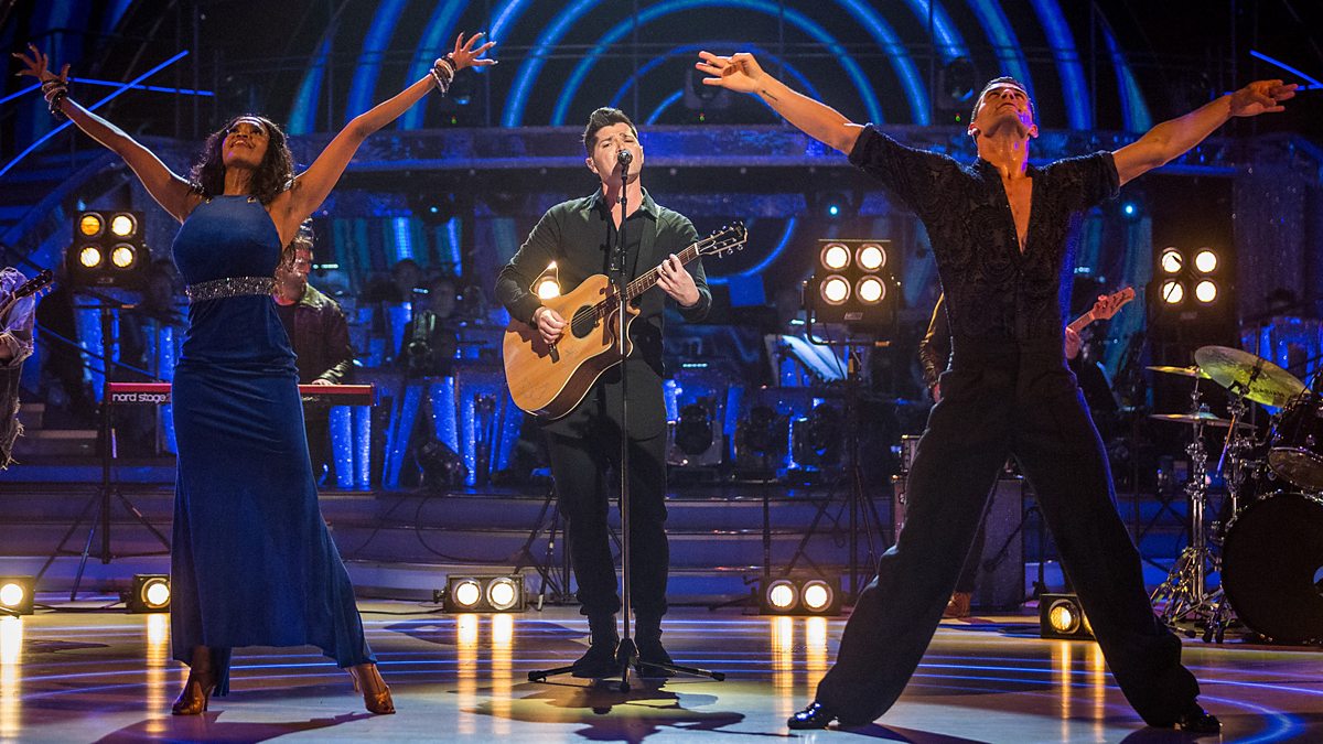 The two couples with the lowest score go head to head in the dance-off. Including a performance Irish rockers The Script.