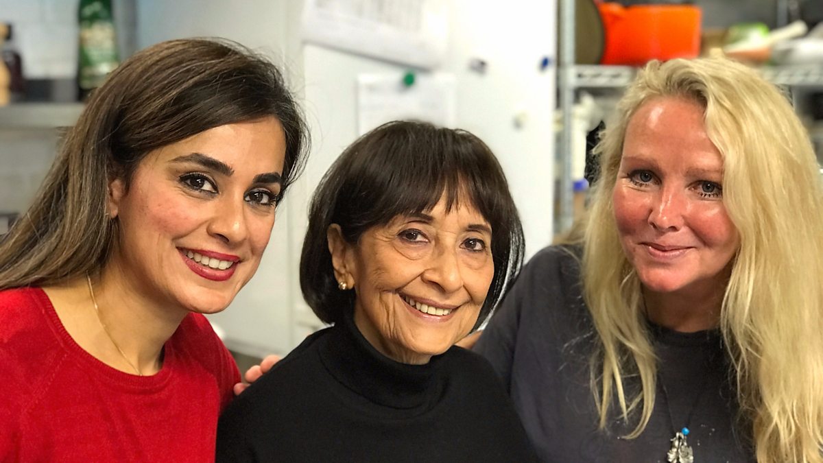 Madhur Jaffrey joins Ghillie Basan and Sumayya Usmani on The Kitchen Cafe Curry Club.