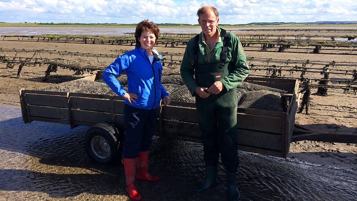 On the Northumberland coast, in the shadow of Holy Island, Chris Sutherland farms Pacific Oysters in the tidal waters. As the water retreats the team tend to the sacks of living oysters on trestles, to collect, grade and return any that are too small. Helen Mark learns how timing is everything - from risking the tides and weather, to purification and grading to making the delivery truck so they reach the restaurants fresh.