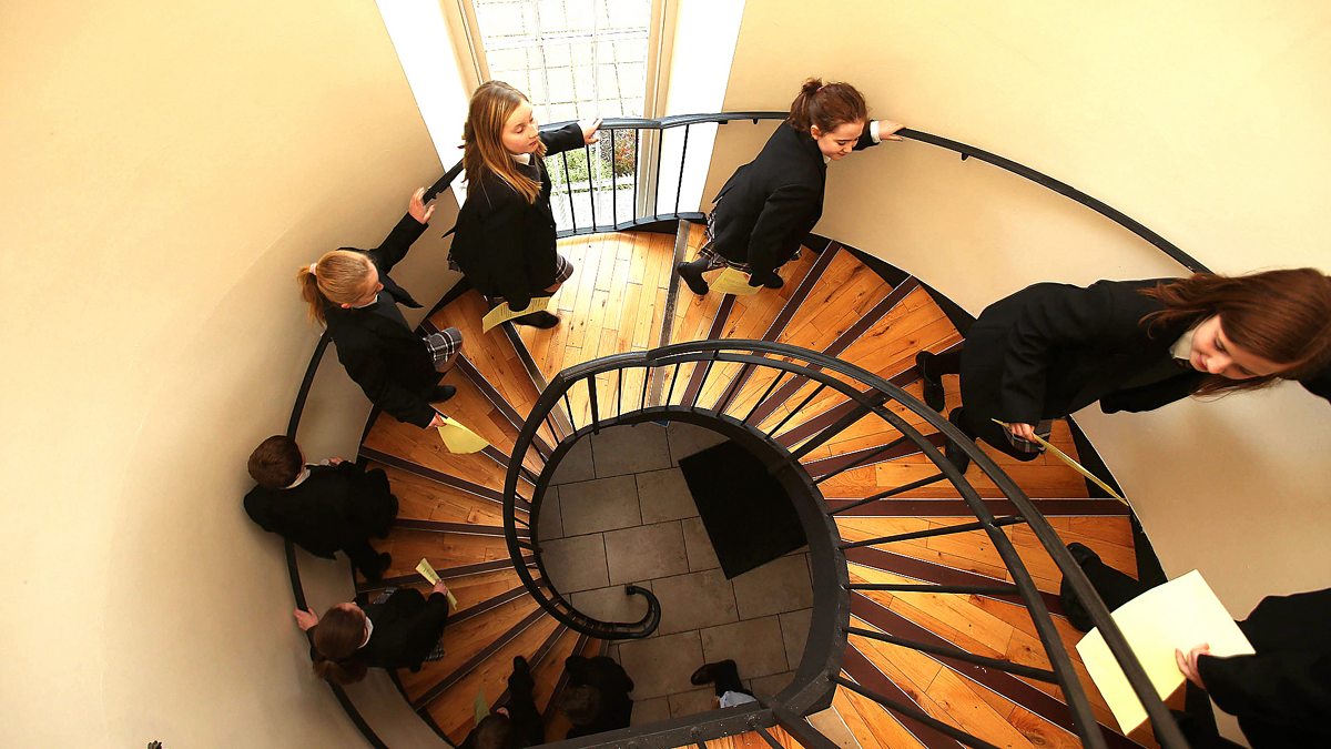It's the start of the new school year and 32 new pupils have arrived at Gaelcholáiste Dhoire. More rooms are needed at the castle to cater for the growing school population, while the pupils sing, debate and race their way to success.