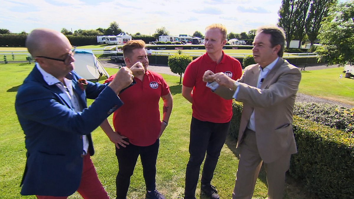 Eric Knowles presents from Southwell Racecourse in Nottinghamshire. Experts David Harper and Gary Pe help guide the reds and blues as they buy three items with £300, which they hope will make a profit at the auction. The reds show David how to be cool, while the blues go in search of a duck-billed platypus.