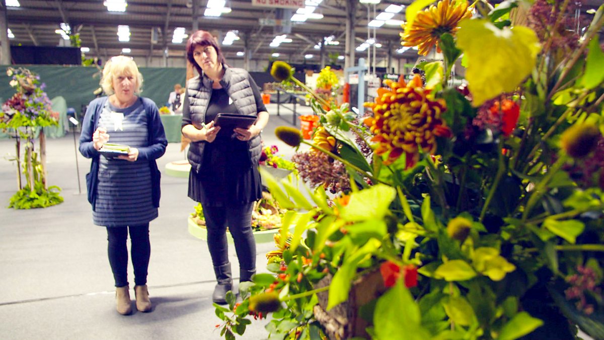 Flower farmer Natalie Davis from Worcestershire and arable farmer Cate Morris from Gloucestershire use flowers from their farms to create stunning floral displays, as they try to impress the judges at the Malvern Autumn Show.