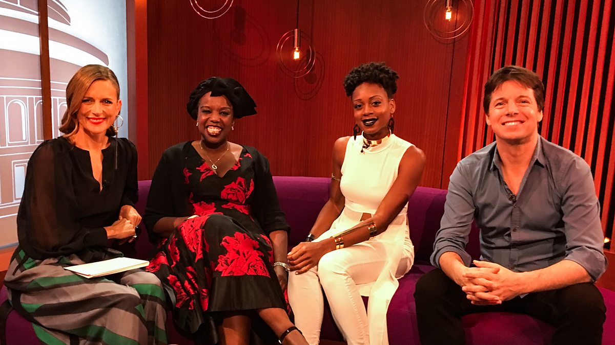 Katie Derham presents the weekly companion guide to the Proms season. This week's sofa guests are violinist Joshua Bell, ahead of his Prom performance, soprano Nadine Benjamin and cellist/singer Ayanna Witter-Johnson, who take on Brahms and New York disco.