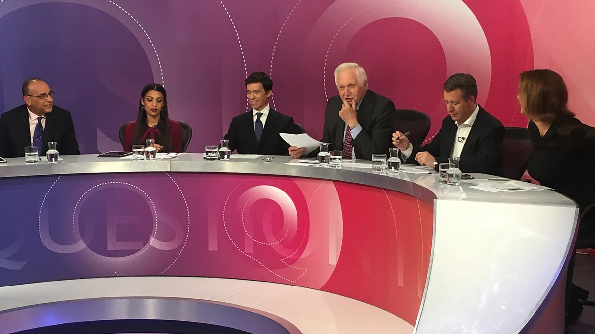 David Dimbleby presents an hour of topical debate from Banbury. On the panel - prisons minister Rory Stewart MP, former shadow chancellor of the exchequer and minister under Tony Blair Chris Leslie MP, businessman and former Dragon's Den investor Theo Paphitis, Faiza Shaheen, director of the left-wing think-tank CLASS and talkRADIO presenter and newspaper columnist Julia Hartley-Brewer.