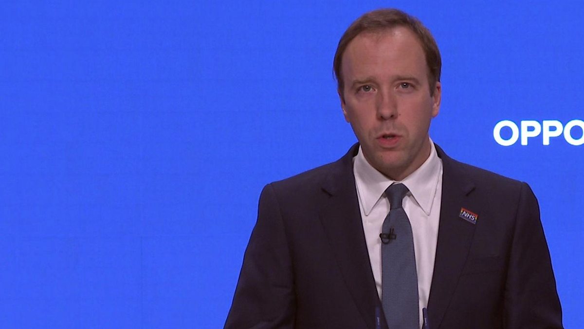 Highlights from the Conservative Party conference in Birmingham, including a speech by the health and social care secretary Matt Hancock, from Tuesday 2 October.
