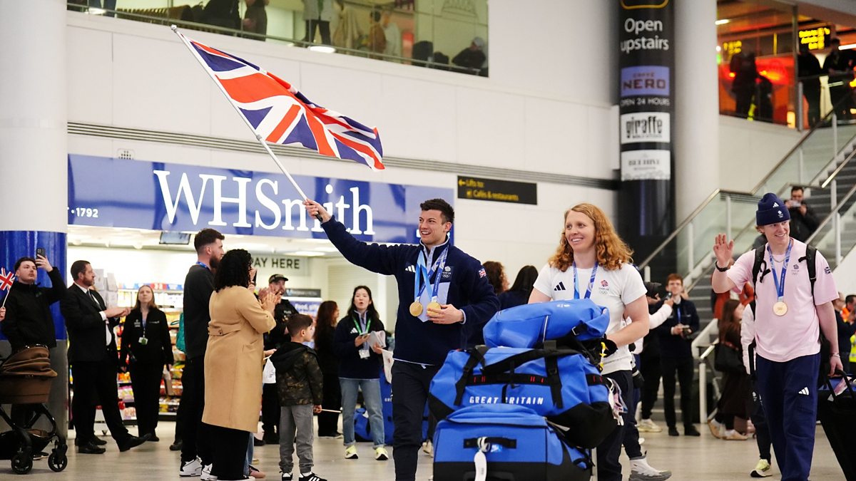 Team GB arrive back from the Winter Olympics after a successful haul of medals in Milano-Cortina
