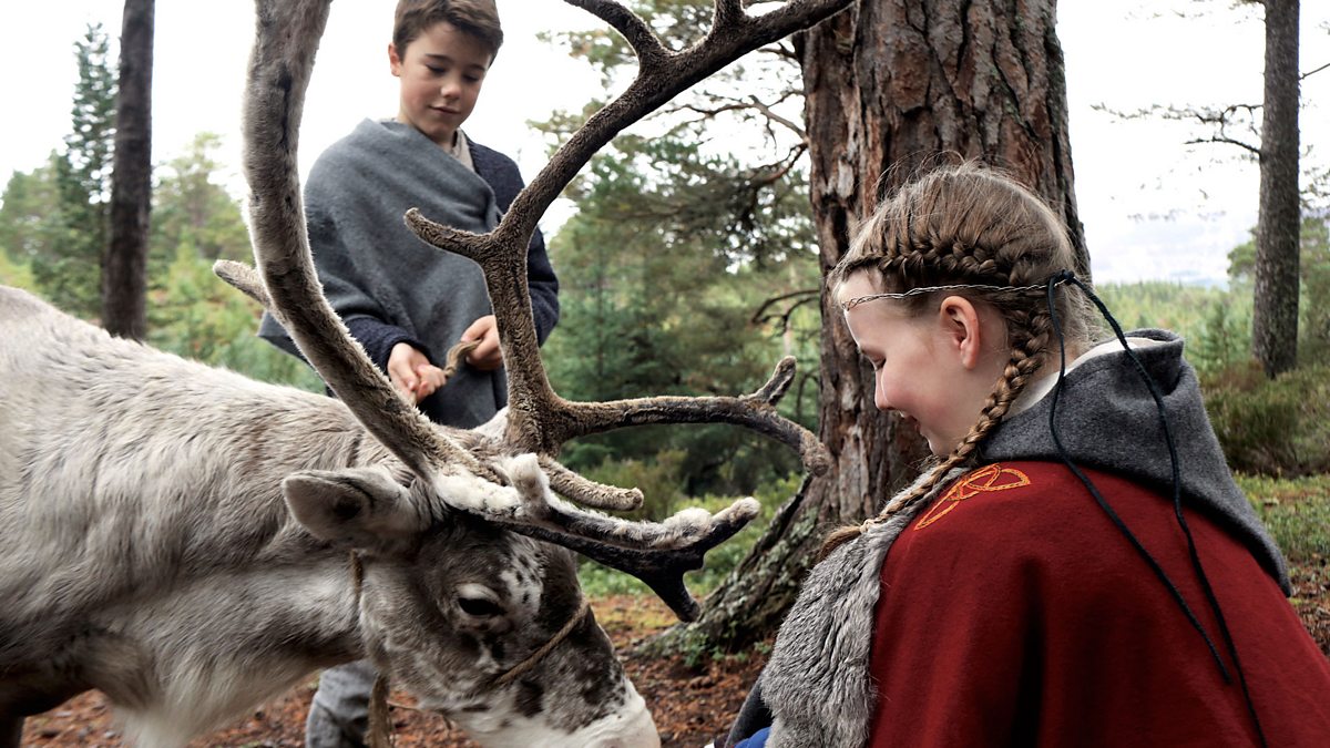 While gathering firewood, Gudrun and Olaf find a lost reindeer. Leading him back to the herd they find their route dangerously waterlogged. Now it’s the reindeer who takes the lead, guiding the young Vikings back to firm ground.