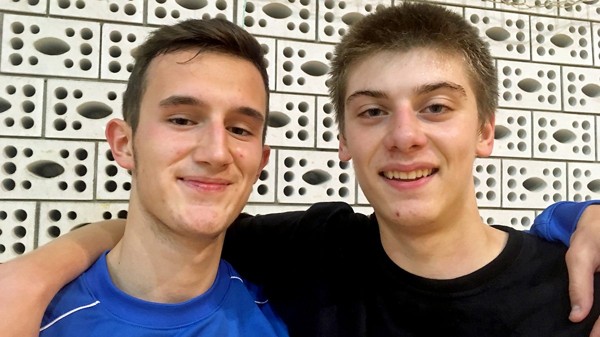 (PHOTO: Hevzi Imeri, an ethnic Albanian and Danilo Dabetic, a Serb, play together at the basketball club Play 017 in Bujanovac – one of very few mixed activities for young people in Serbia’s Presevo Valley. BBC photo.)