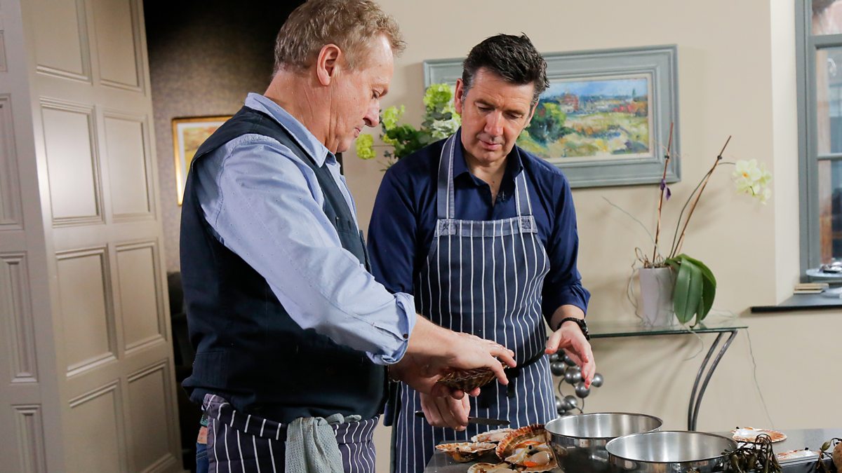 Chef Nick Nairn and Dougie Vipond focus on Scottish shellfish, cooking hand-dived west coast scallops, baked in garlic butter.
